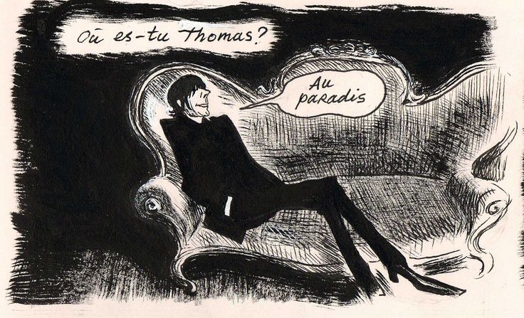 Le lien central reste sans nul doute l’album Je suis au paradis (2011), une merveille, en passant (« L’enfant sorcière » est une des plus belles chansons qui soient). De toutes ses pochettes d’album, elle est la seule qui soit dessinée, et par Christophe Blain lui-même. L’auteur du Réducteur de vitesse, de Quai d’Orsay, des Ogres, mais aussi premier dessinateur des Donjon Potron-minet avec Trondheim et Sfar, avait déjà réalisé les dessins du clip Comme un Manouche sans guitare de Thomas Dutronc en 2009 et pas encore publiés La Fille, BD musicale réalisée avec Barbara Carlotti, en 2013. Le projet est ici moins ambitieux, mais Blain produit une très belle pochette et l’affiche de la tournée (affiche que j’ai possédée, dédicacée par Fersen, mais restée avec une ancienne compagne – elle était signée aux deux prénoms). Comme le clip, on imagine ici un investissement réel du chanteur dans le choix.