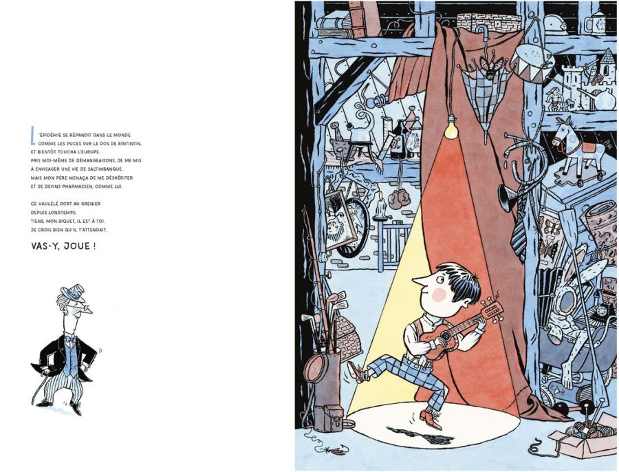 Je me sens très proche de l’univers de Christophe Blain, oui. Les grandes chaussures fines, cette espèce d’élégance qu’il y a dans ses personnages, ses ellipses, ses bascules – je fais ça aussi dans mes chansons -, son rythme, son esthétique, son appréhension du texte, ce qu’il aime dans la langue : à la fois un certain esprit et un certain style. Un esprit français, cette vieille civilisation un peu moisie mais extrêmement raffinée.